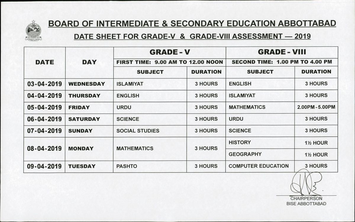 Note: The above-mentioned datesheet is the official date sheet announced by the BISE Abbottabad Board.